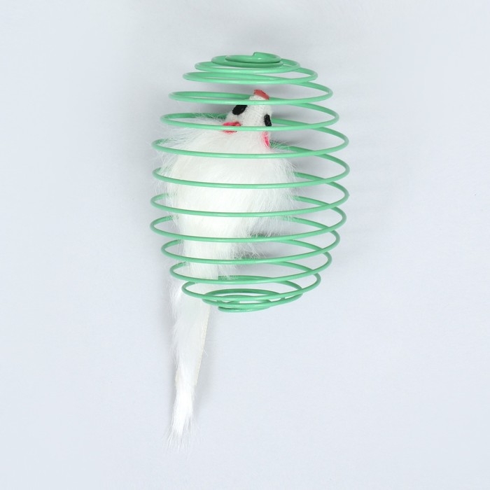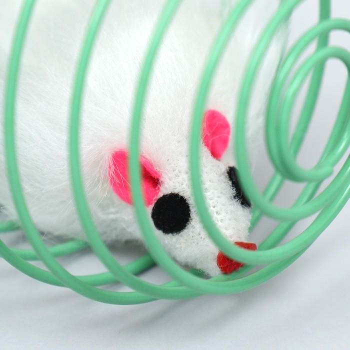 Игрушка "Мышь в шаре", 7 см, белая/зелёная