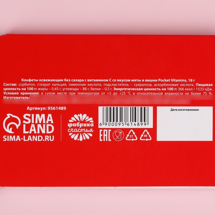 Драже освежающее «Мурчит для тебя», со вкусом мяты и вишни, 18 г.