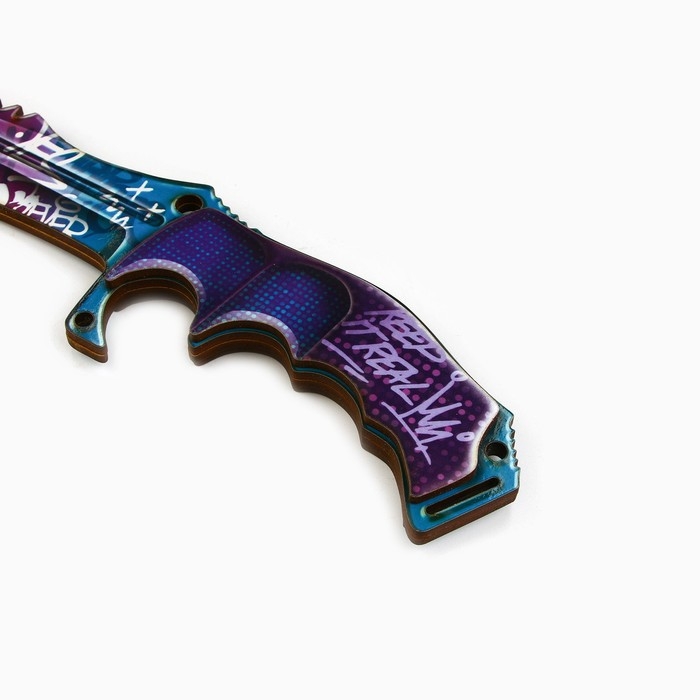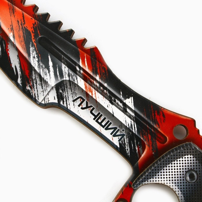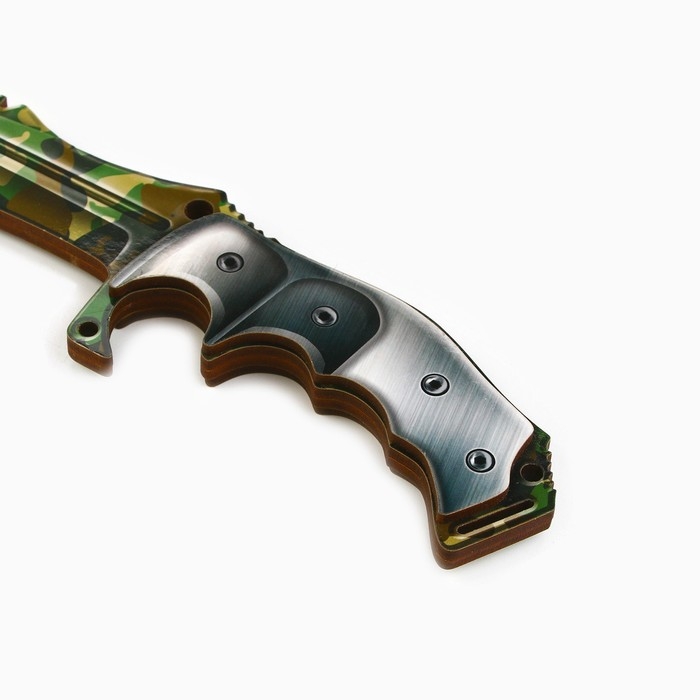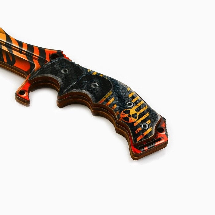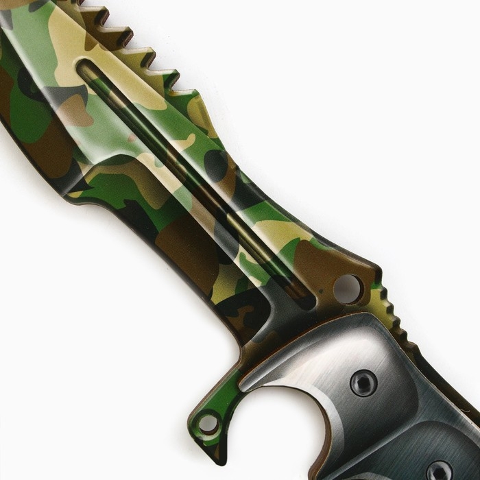 Охотничий нож из дерева не является холодным оружием, он изготовлен из фанеры высокого качества. Преимущество деревянного ножа в его прочности - он с усиленной ручкой в несколько слоёв. На детскую игрушку нанесен двухсторонний рисунок. Стильный дизайн игрушечного ножа, а также его форма притягивают внимание. О веселой и динамичной игре мальчиков можно не беспокоиться - у них в руках безопасное оружие. Сувенирный нож не имеет острых краёв и не может посадить занозу или нанести вред. Нож игрушка тщательно отшлифован, клинок не заточен! Идеален как дополнение к подарку на 23 февраля, Новый Год или день рождения.