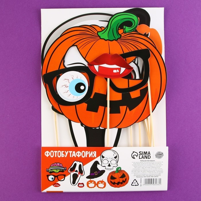 Хотите сделать Хэллоуин ярким и незабываемым? Набор картонной фотобутафории - незаменимый помощник в таком деле. В него входят 9 ярких тематических предметов на деревянных палочках, которые преобразят вас до неузнаваемости.