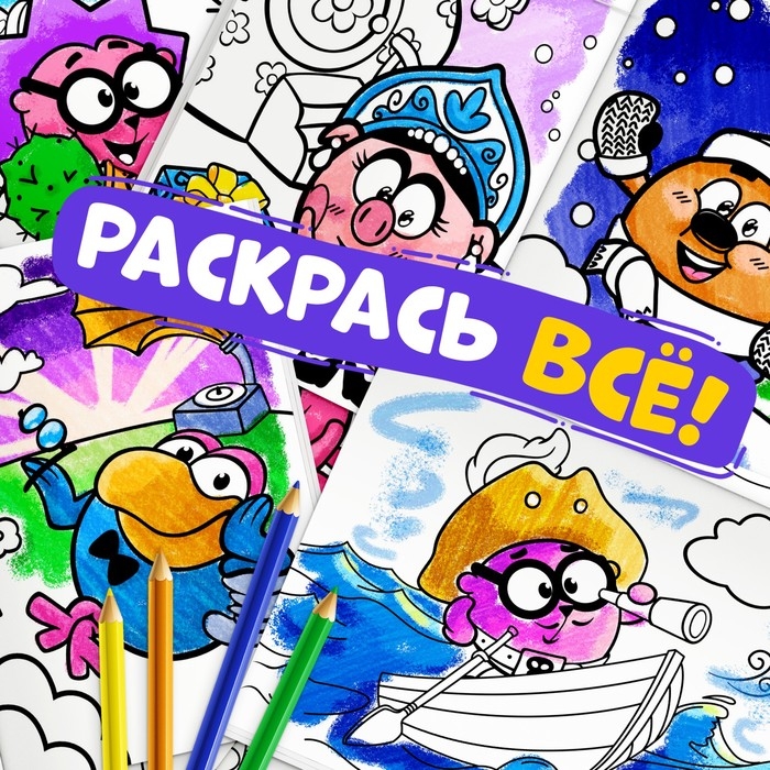- Внутри 48 рисунков с любимыми персонажами из мультфильма «Смешарики».