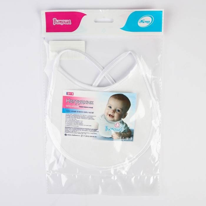 Нагрудник детский 18х18 см., микрофибра с ПВХ покрытием «Витоша», белый