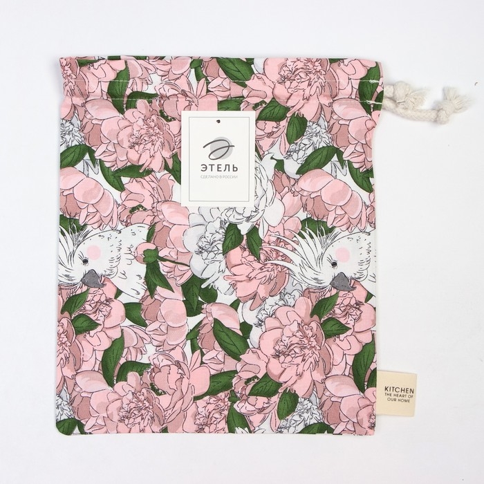 Мешочек текстильный Этель "Попугай" 27х34 см, 80% хл, 20% пэ, сатин 110 г/м2