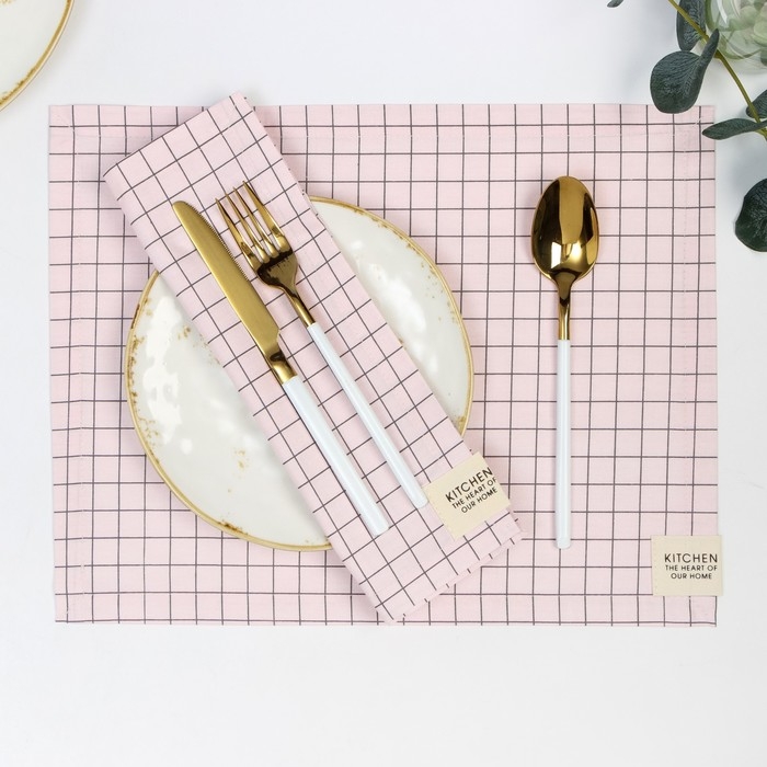 Набор салфеток Этель "Клетка" 30х40 см - 2 шт, 80% хл, 20% пэ, сатин 110 г/м2