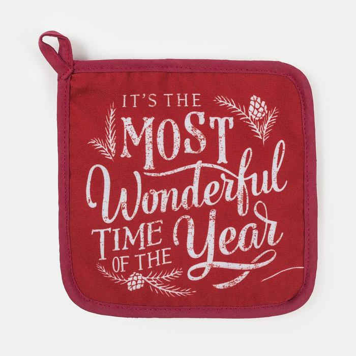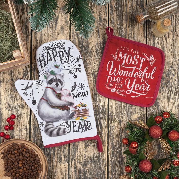 Новогодний кухонный набор "Happy new year": варежка-прихватка 20х28 см, прихватка 17х17 см