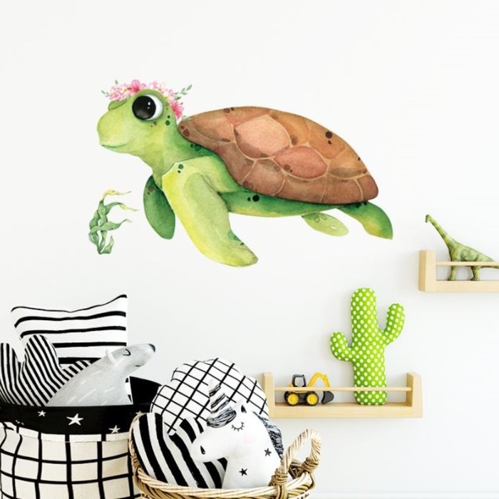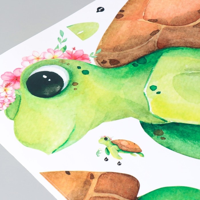 Наклейка пластик интерьерная цветная "Черепашка в цветочном веночке" 40х60 см