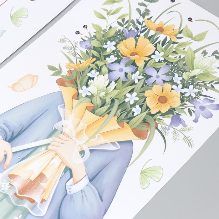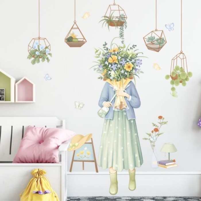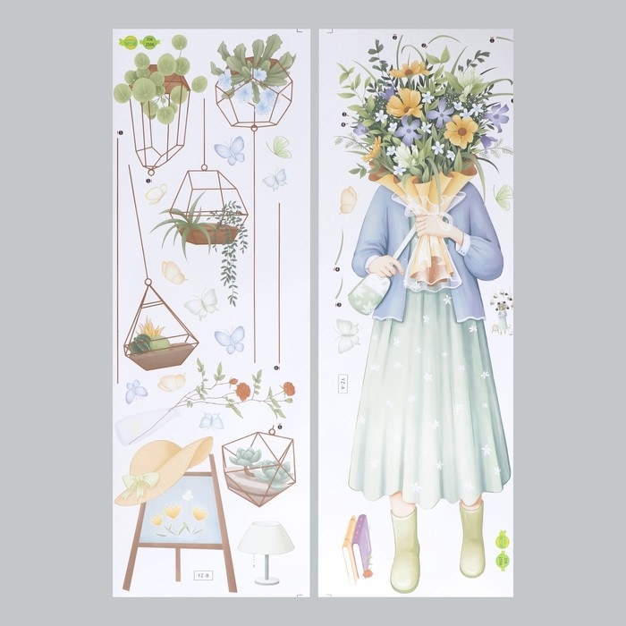 Наклейка пластик интерьерная цветная "Девушка с полевыми цветами"набор 2 листа 30х85 см
