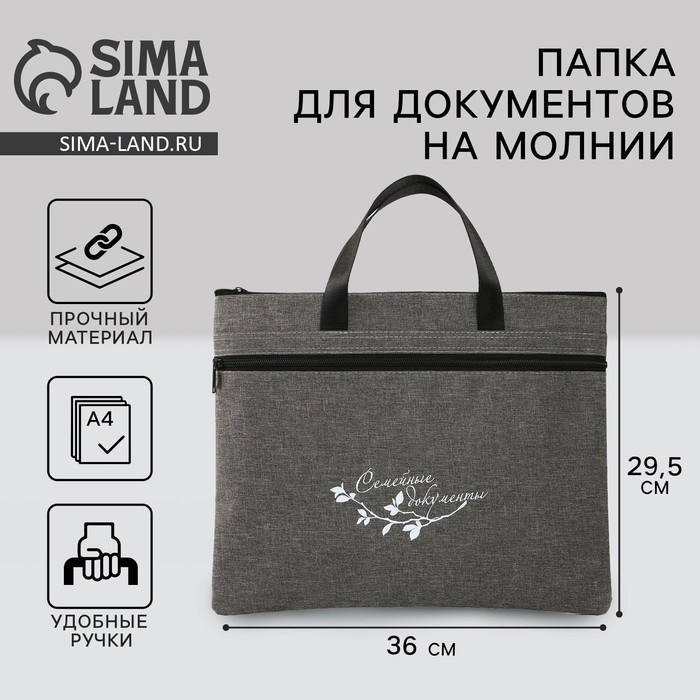 Папка для документов с ручками на молнии А4 «Семейные документы», 36 х 29,5 см.