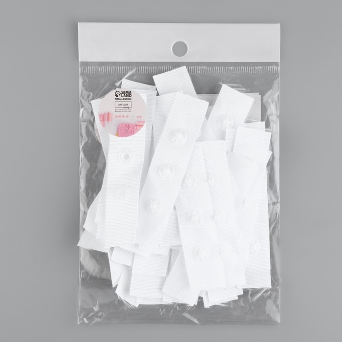 Застёжка для боди, d = 8 мм, 1,8 × 7 см, 20 шт, цвет белый