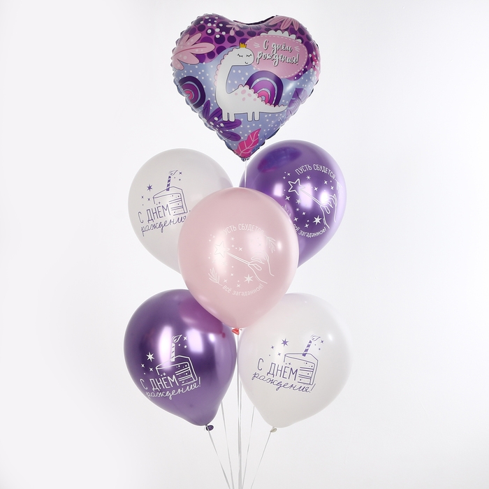 Набор воздушных шаров «С ДР», динозаврик, латекс, фольга, 6 шт.