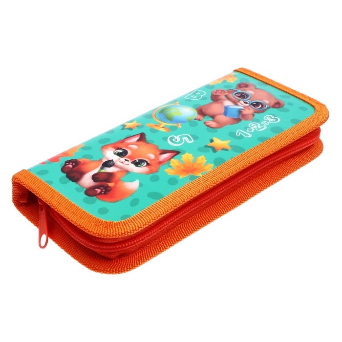 Пенал 1 секция, 90 х 195 х 25 мм, Calligrata "Зверята", ламинированный картон