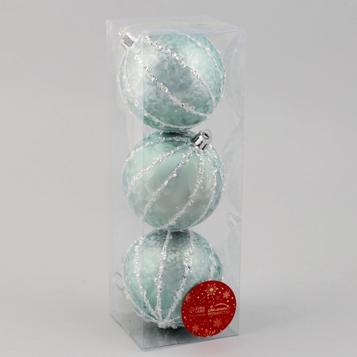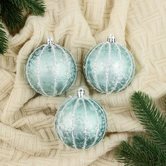 Набор шаров пластик d-8 см, 3 шт "Сказочные узоры" полосы, зелёный