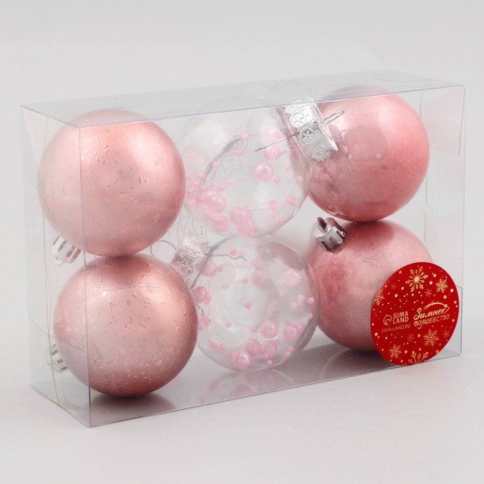 Набор шаров пластик d-6 см, 6 шт "Мэдисон" бусинки, розовый