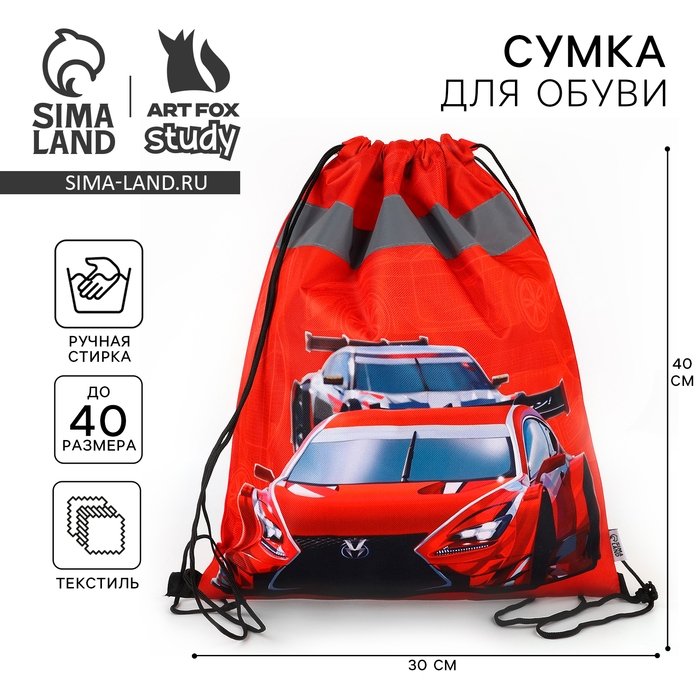 Мешок для обуви со светоотражающим элементом «Гоночная тачка» 30 х 40 см