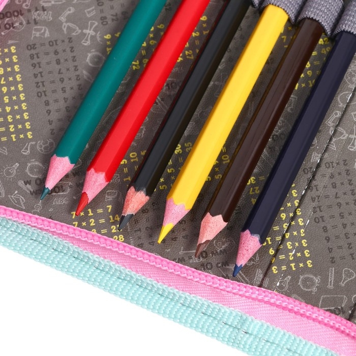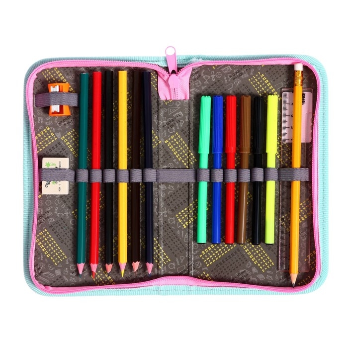Пенал 1 секция, 115 х 205 мм, с наполнением 16 предметов, Calligrata "Девочка" ламинированный картон, 30П26/set