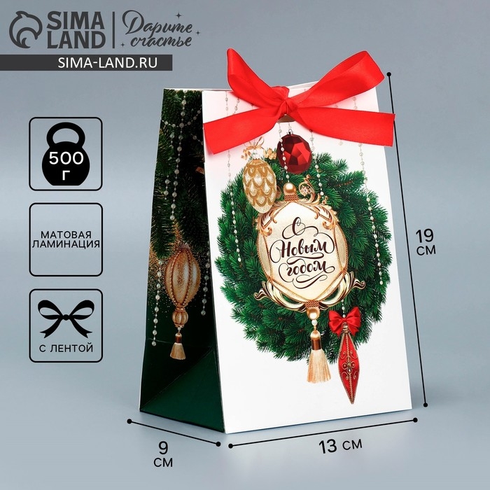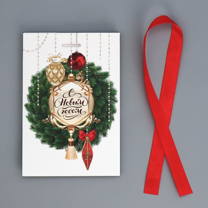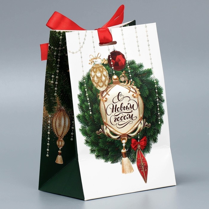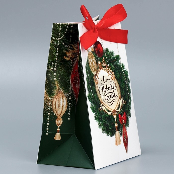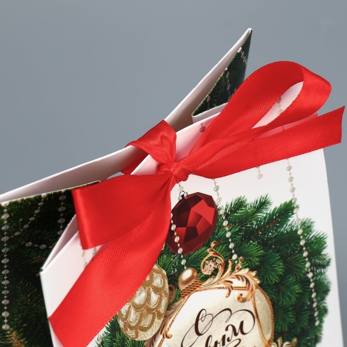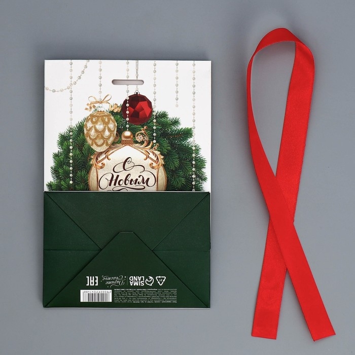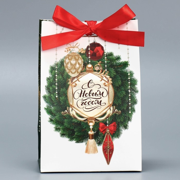 Пакет подарочный новогодний с лентой «Новогоднее настроение», 13 х 19 х 9 см, Новый год