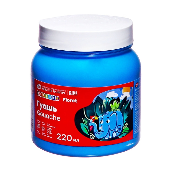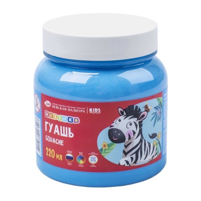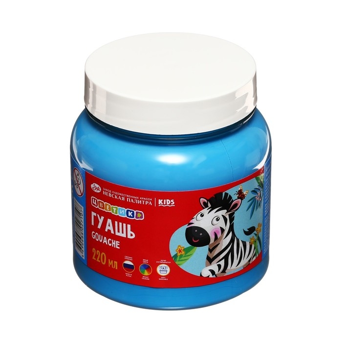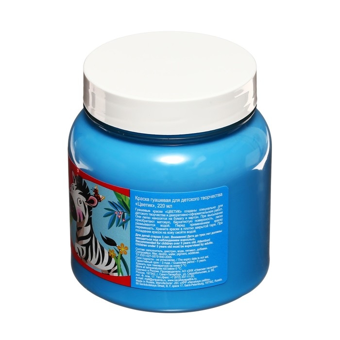 Гуашь банка 220 мл, ЗХК "Цветик", голубая, 3023513