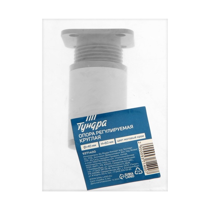 Опора регулируемая ORKR001CR ТУНДРА, круглая, d=40, H=60 мм, цвет матовый хром