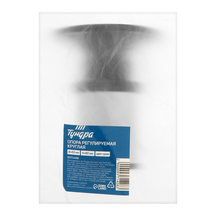 Опора регулируемая OR001CR ТУНДРА, d=50 мм, H=80 мм, цвет хром