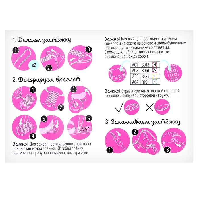 Сделать сверкающие алмазные браслеты очень просто! Ведь всё необходимое вы найдёте в этом наборе! Вам понадобится чуточку вдохновения, и ваши оригинальные аксессуары на каждый день готовы!