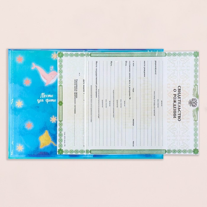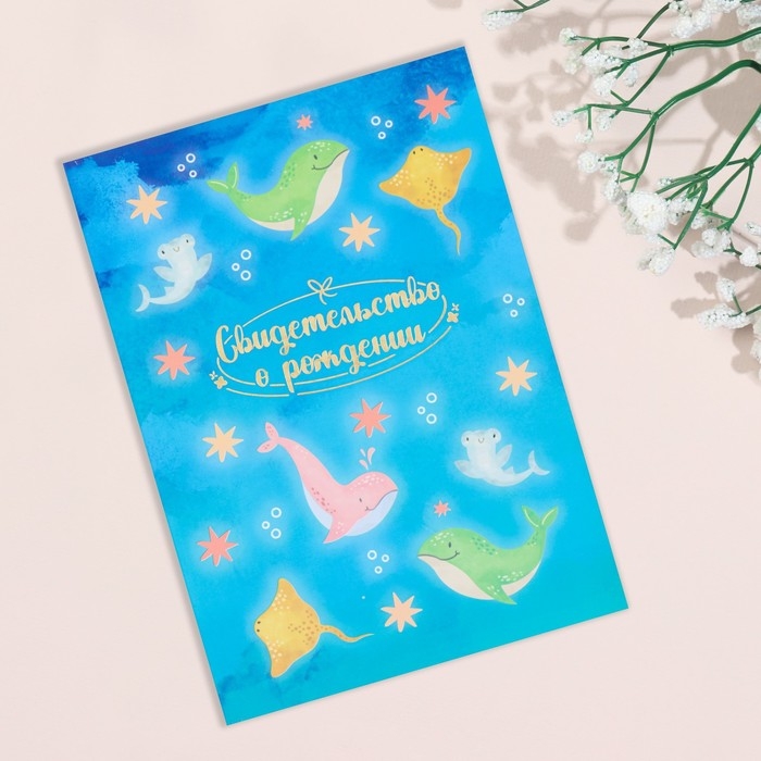 Свидетельство о рождении "Дельфины" тиснение, А5
