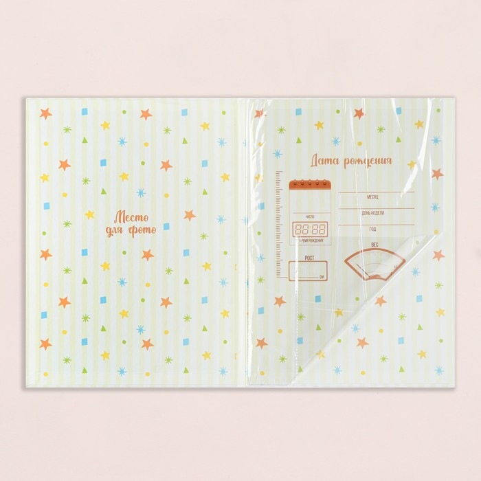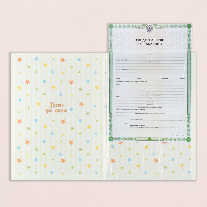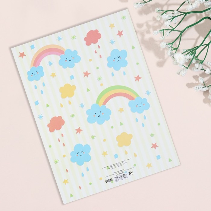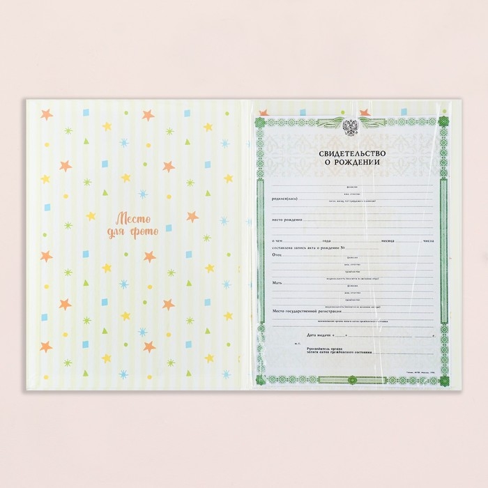 Свидетельство о рождении "Радуга и облака" тиснение, бежевый фон, А4