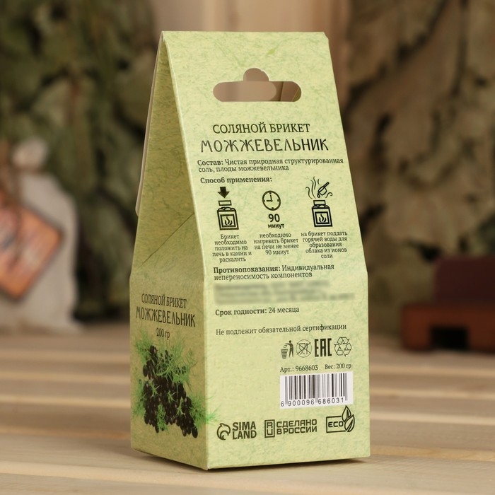 Соляной брикет куб "Можжевельник" 200 г "Добропаровъ"