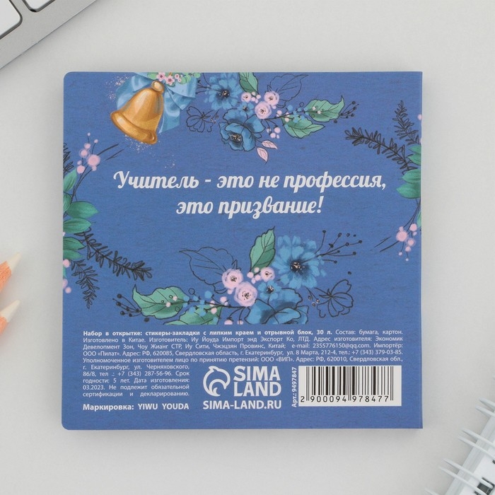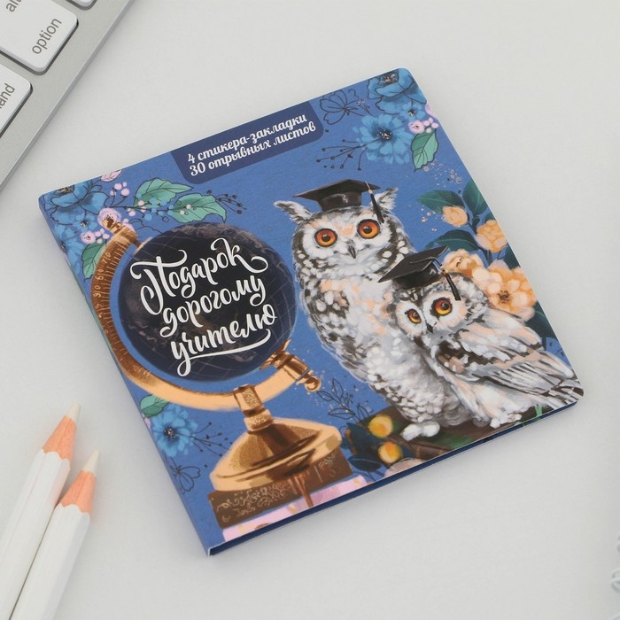 Набор в открытке «Учителю: Совы», стикеры 4 х 20 листов, отрывной блок 30 листов