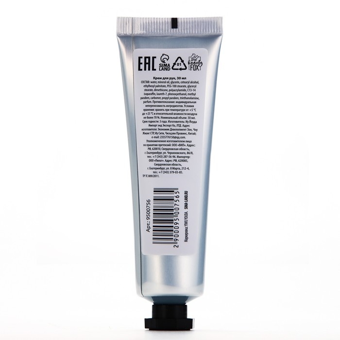 Крем для рук увлажняющий, 30 мл, аромат сочного лимона, BEAUTY FOX