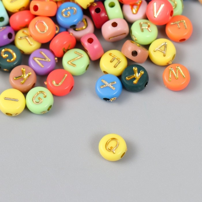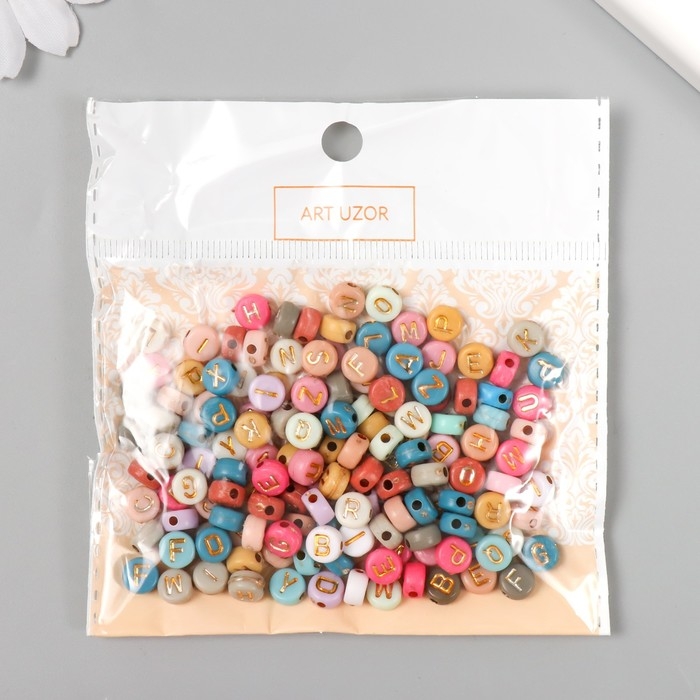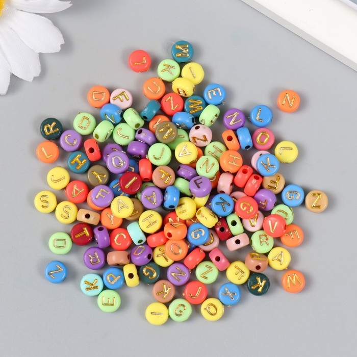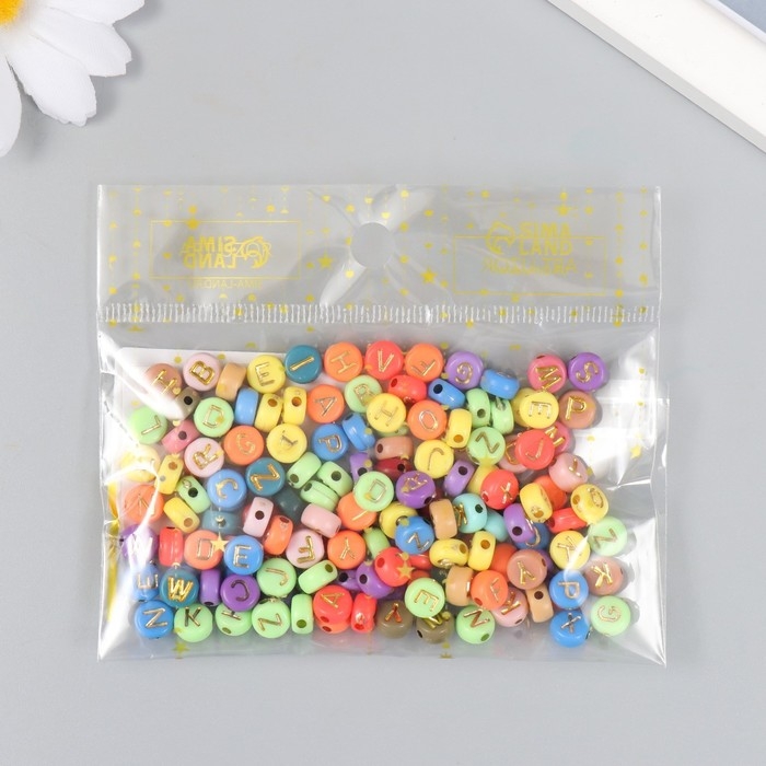 Набор бусин для творчества пластик "Английские буквы золото" разноцвет 20 гр 0,4х0,7х0,7 см 961914