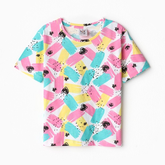 Футболка для девочки, цвет белый/сердца, рост 134 см