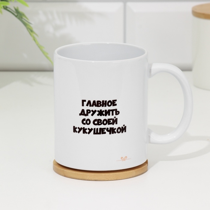 Кружка изготовлена из керамики. Рисунок нанесён методом сублимации, при котором краска проникает в верхний слой изделия, поэтому изображение получается стойким.