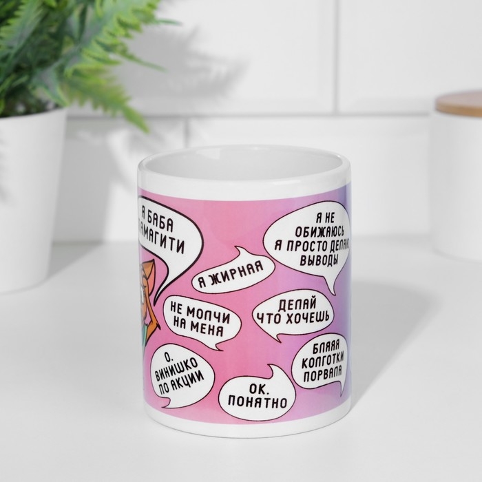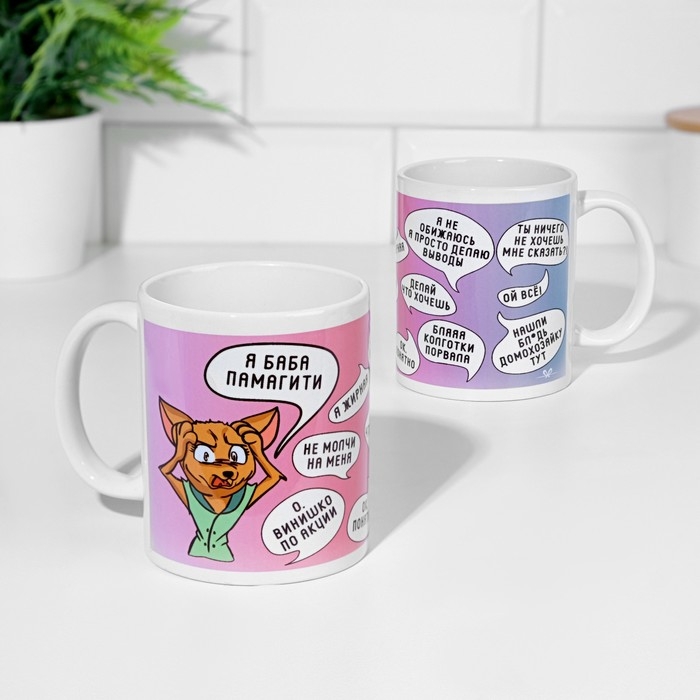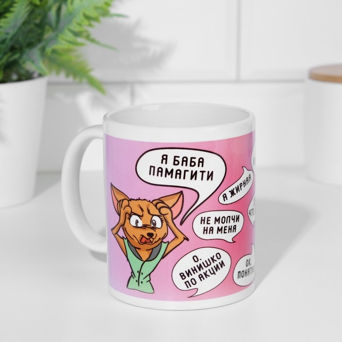 Кружка изготовлена из керамики. Рисунок нанесён методом сублимации, при котором краска проникает в верхний слой изделия, поэтому изображение получается стойким.