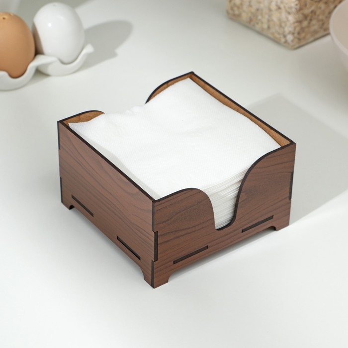 Салфетница деревянная «Орех», без гравировки, с салфетками, цвет коричневый