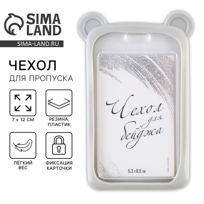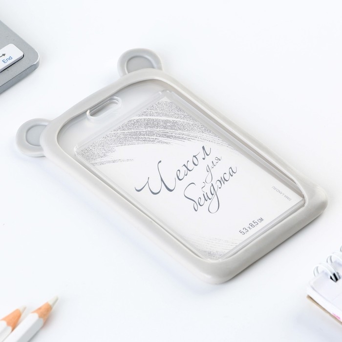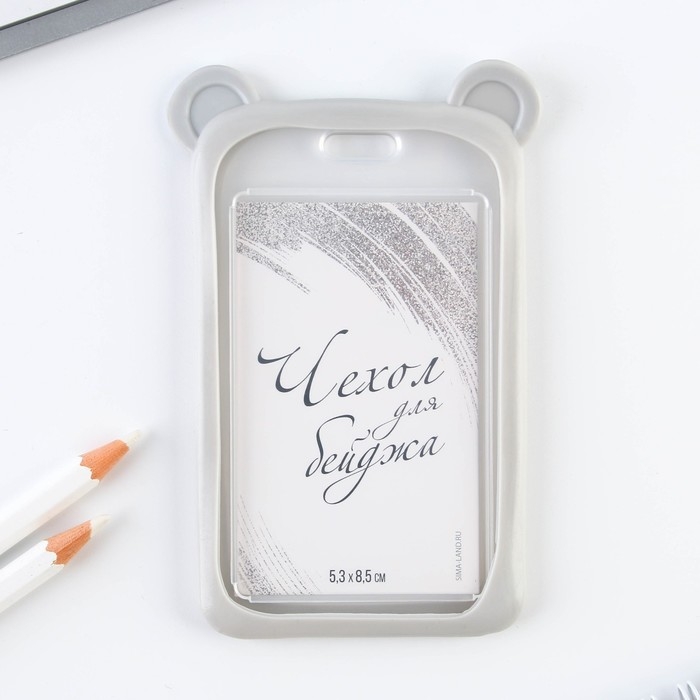 Чехол для бейджа с ушками «Мишка», 7 х 12 см