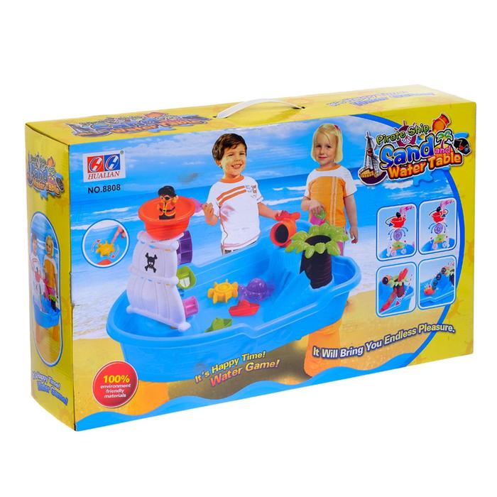 Столик игровой «Кораблик», с песочным набором, 16 аксессуаров для игры с песком и водой, объём ведра 0,25 л