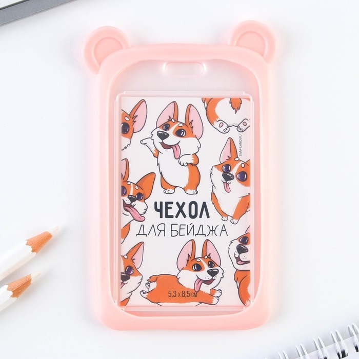 Чехол для бейджа с ушками «Улыбнись», 7 х 12 см
