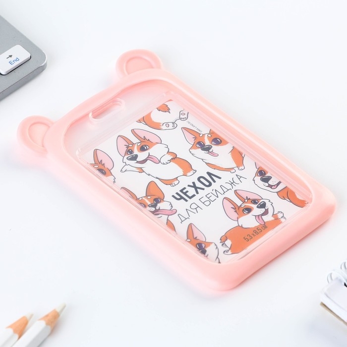 Чехол для бейджа с ушками «Мишка», 7 х 12 см