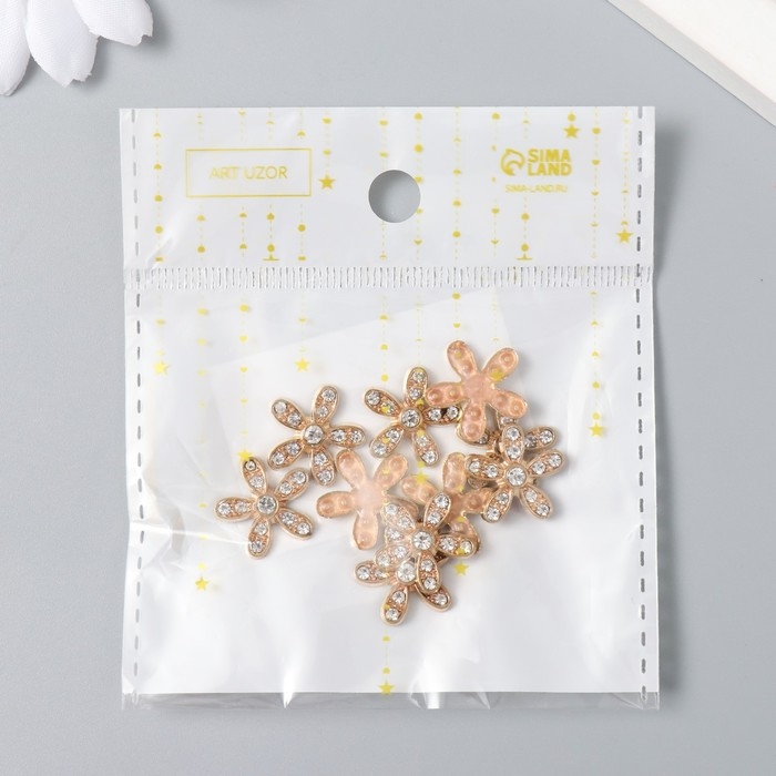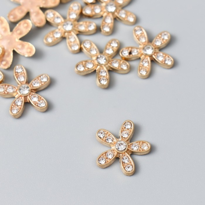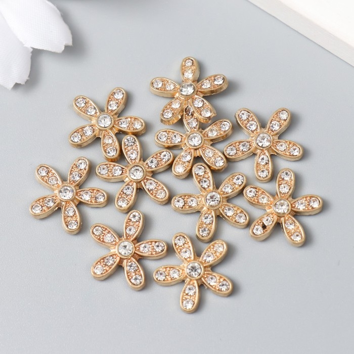 Декор для творчества металл, стразы "Ромашка" набор 10 шт золото 1,5х1,5 см