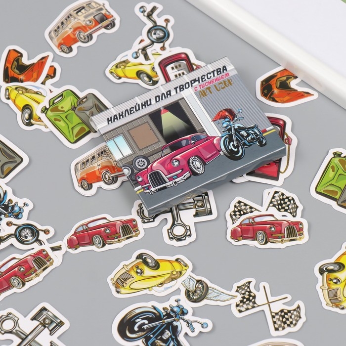 Наклейки для творчества "Адреналин и скорость" тиснение серебро набор 48 шт 9х7х0,8 см