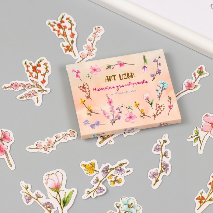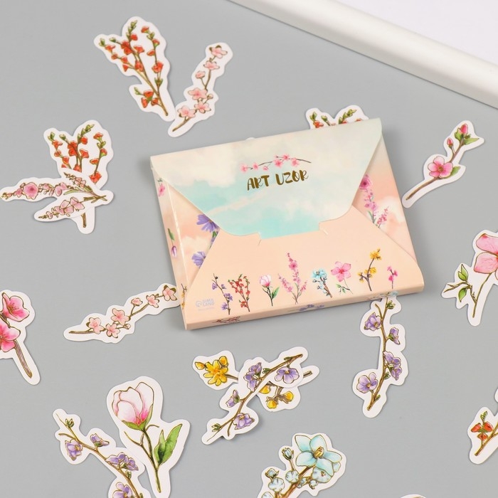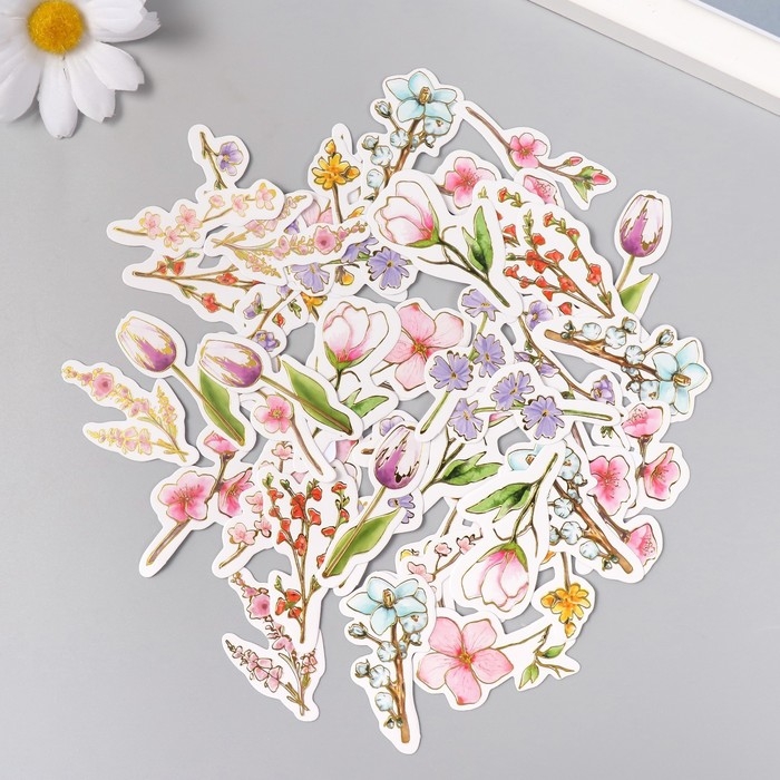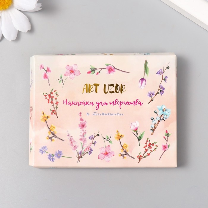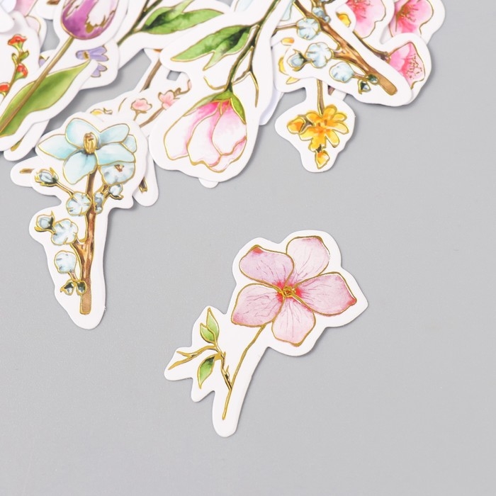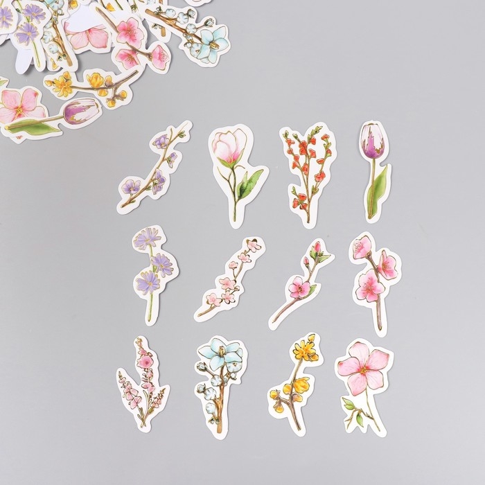 Наклейки для творчества "Весеннее цветение" тиснение золото набор 48 шт 9х7х0,8 см