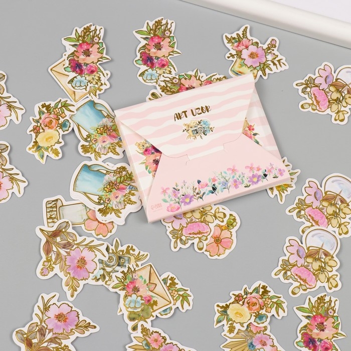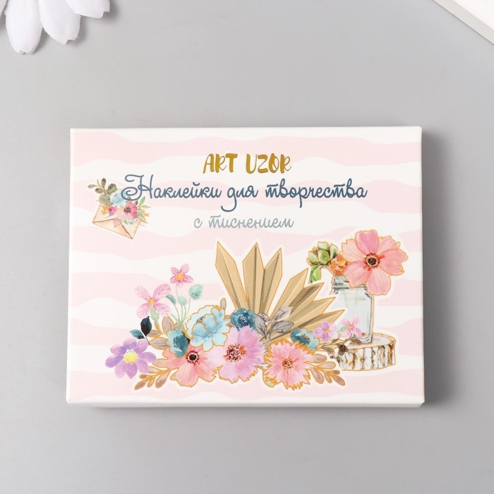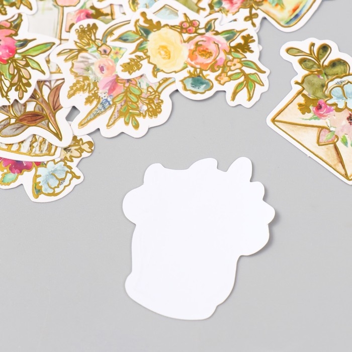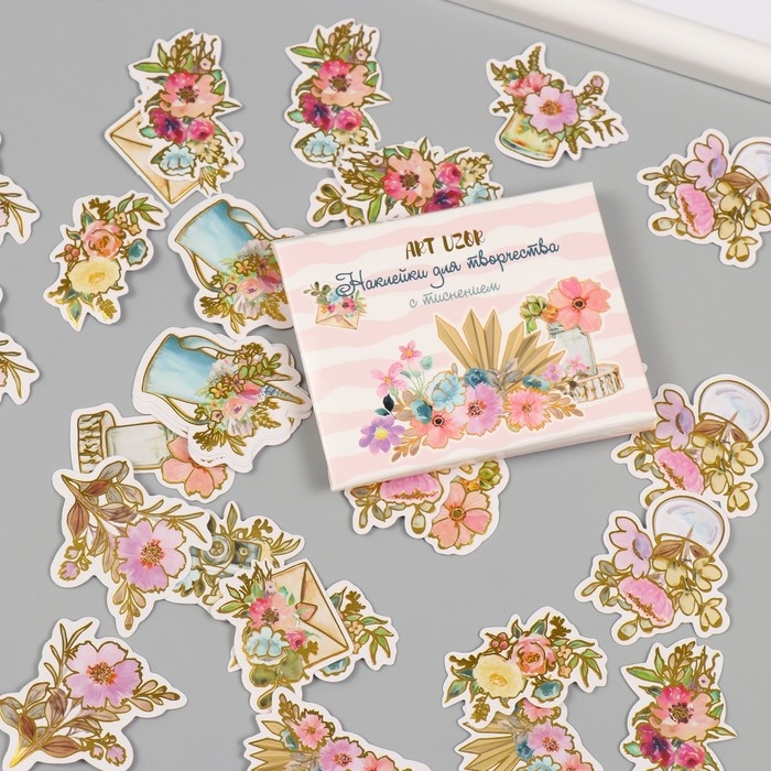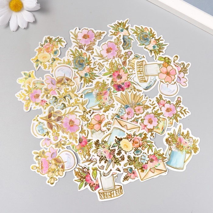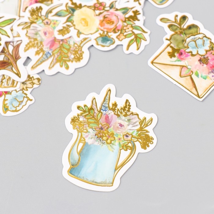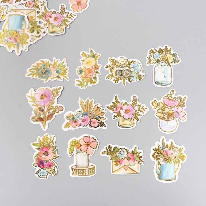 Наклейки для творчества "Акварельные цветы" тиснение золото набор 48 шт 9х7х0,8 см