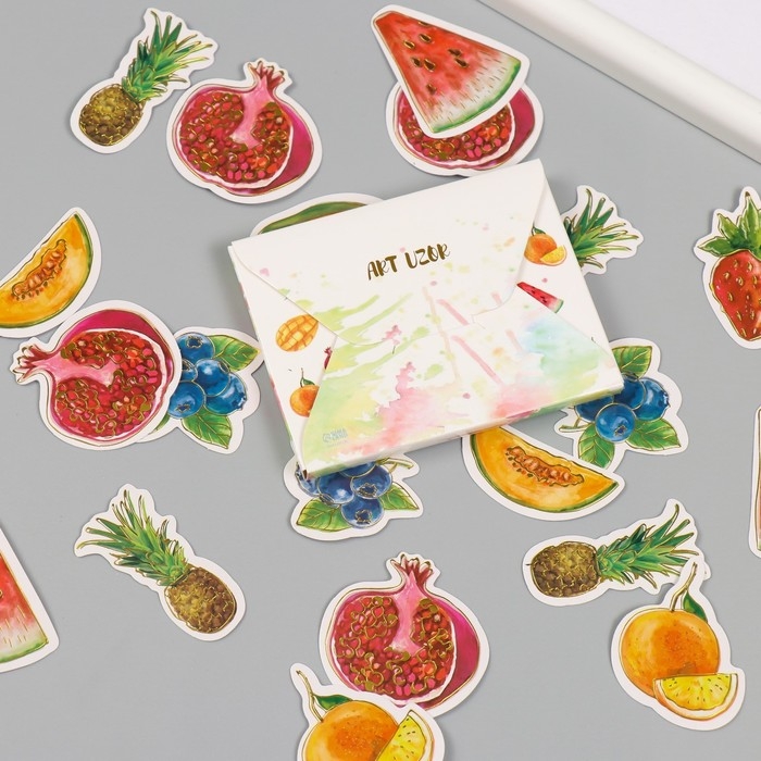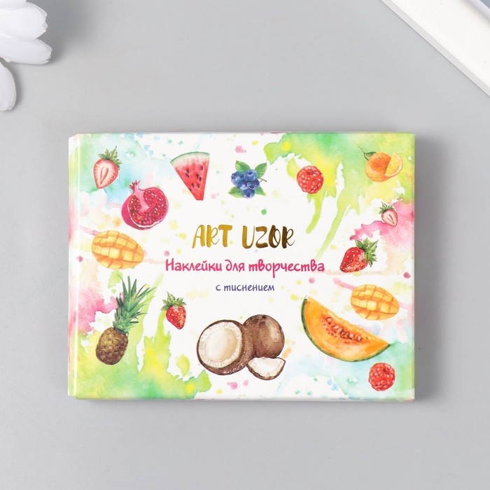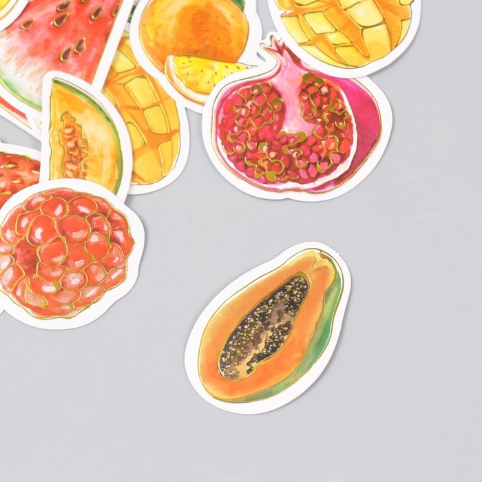 Наклейки для творчества "Фрукты и ягоды" тиснение золото набор 48 шт 9х7х0,8 см