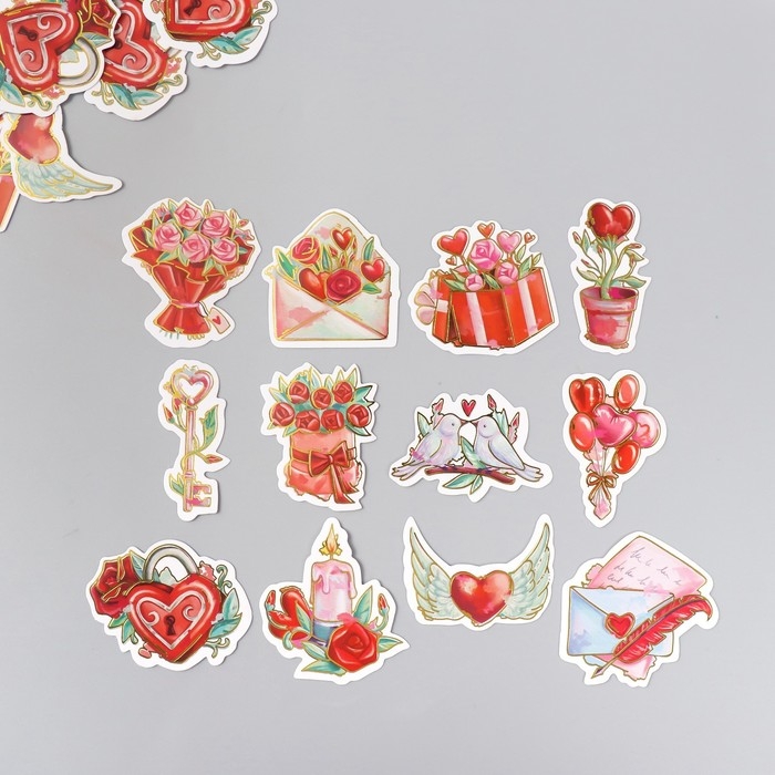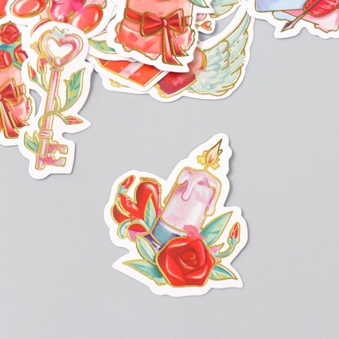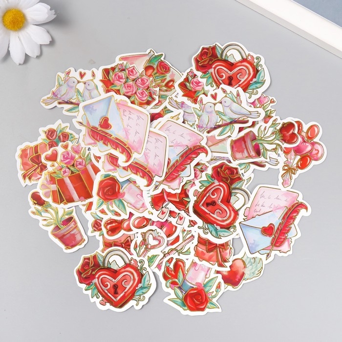 Наклейки для творчества "Признание в любви" тиснение серебро набор 48 шт 9х7х0,8 см