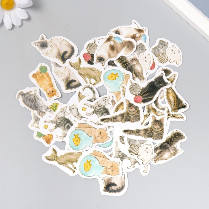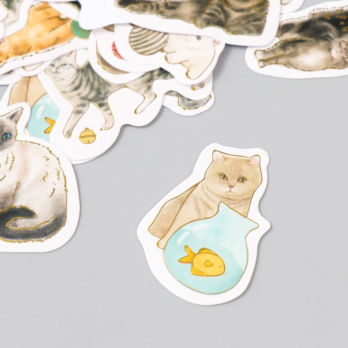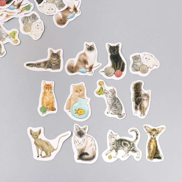 Наклейки для творчества "Породы кошек" тиснение золото набор 48 шт 9х7х0,8 см