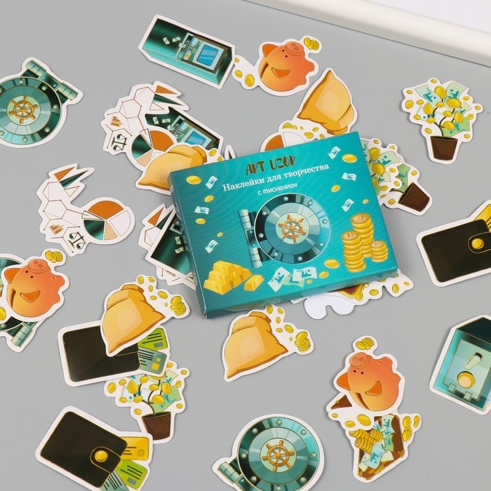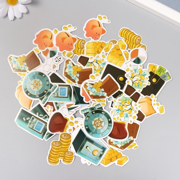 Наклейки для творчества "Богатство" тиснение золото набор 48 шт 9х7х0,8 см