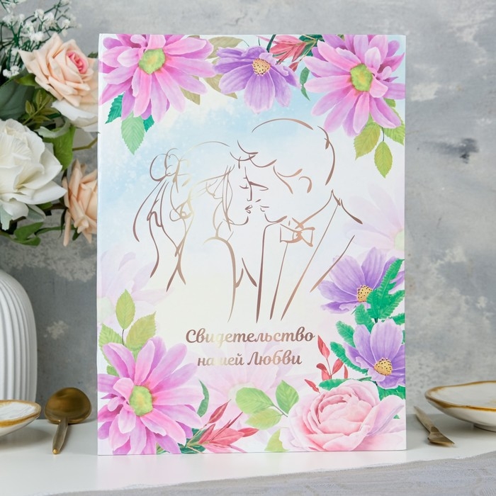 Свидетельство о заключении брака "Нашей любви" хризантемы, А4