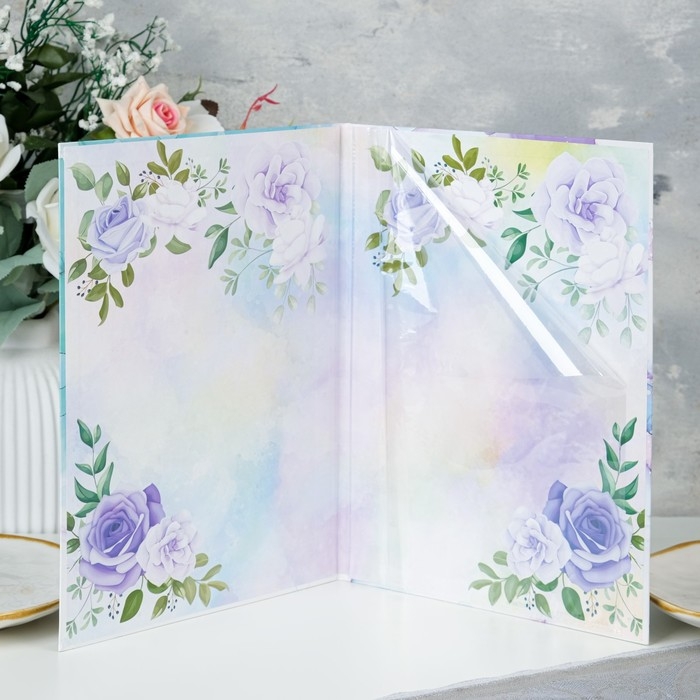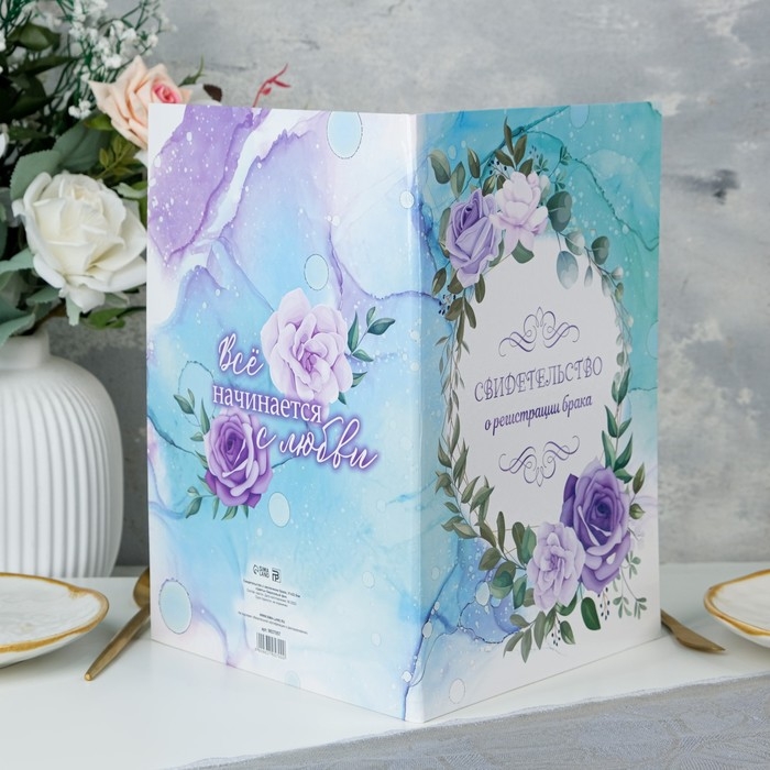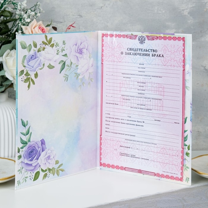 Свидетельство о заключении брака "Цветы" бирюзовый фон, А4