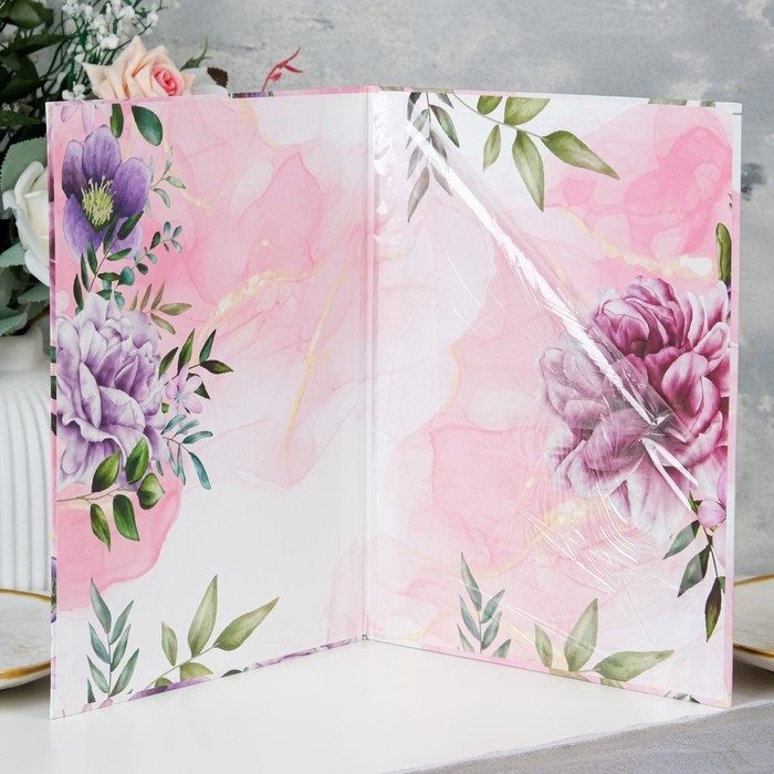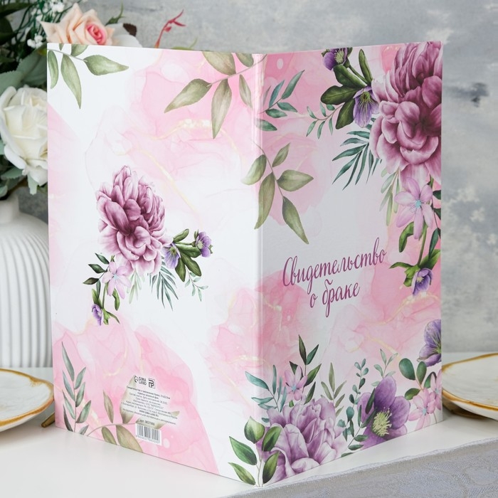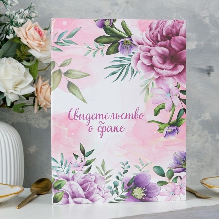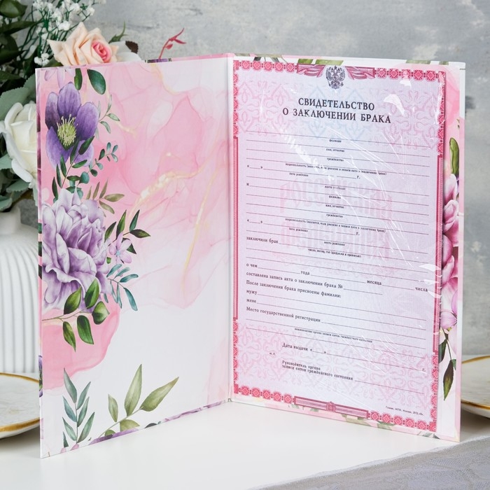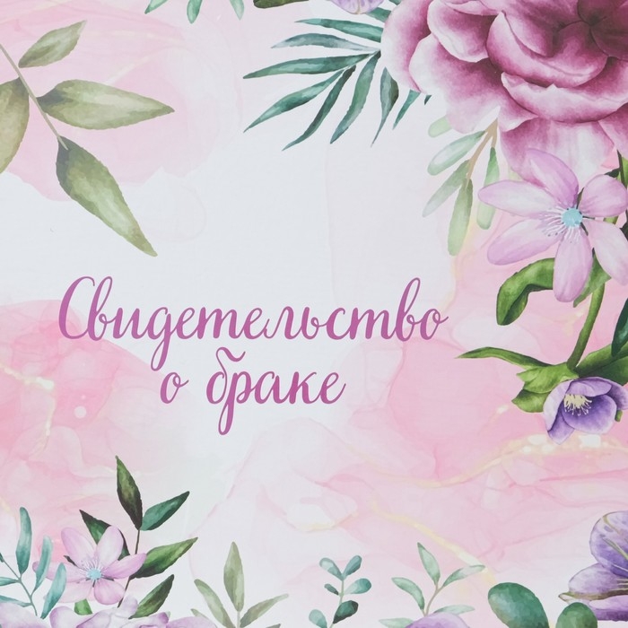 Свидетельство о заключении брака "Цветы" розовый фон, А4