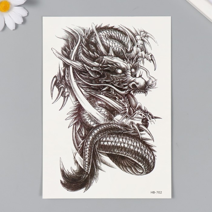 Татуировка на тело чёрная "Чёрный дракон" 15х21 см